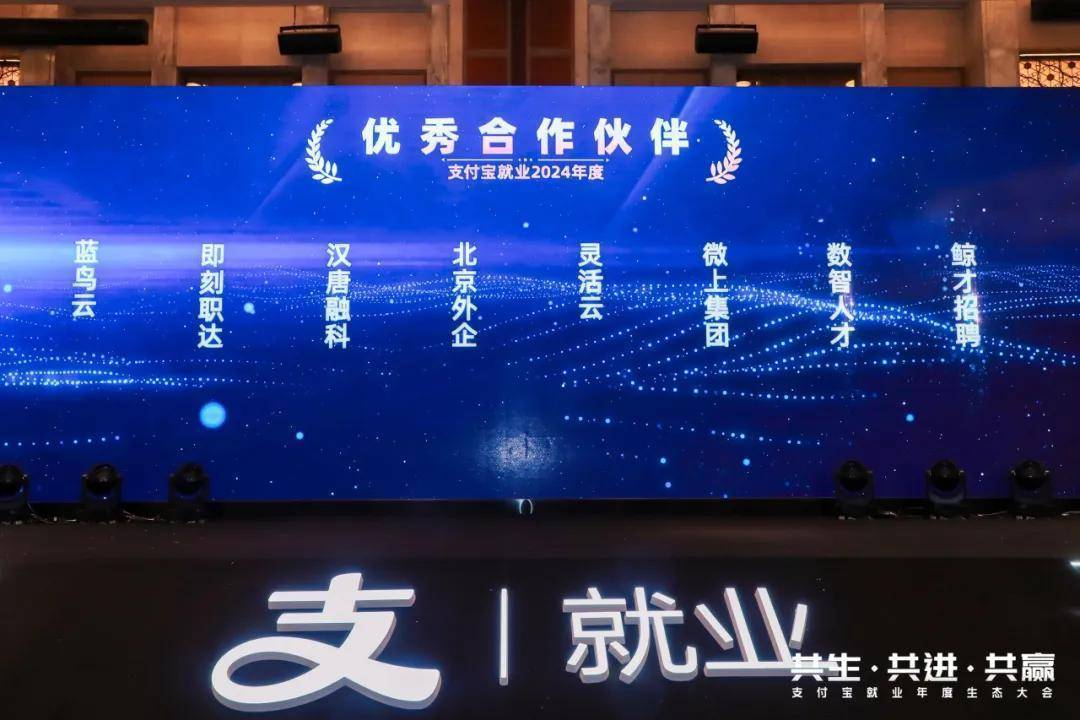 1月8日,支付宝就业围绕行业难题,以“共生·共进·共赢”为主题,在杭州举办了首届支付宝就业年度生态大会。现场邀请了圆通速递、饿了么蜂鸟即配等生态合作伙伴,共同发起了“安心就业联盟”启动仪式。鲸才招聘受邀其中,且获得“支付宝就业2024年度优秀合作伙伴”称号。